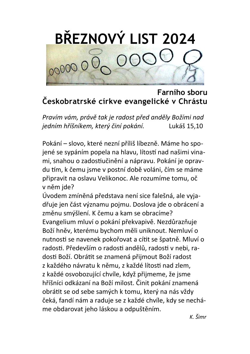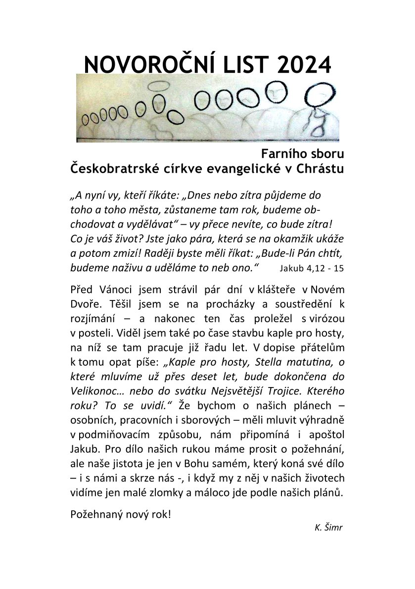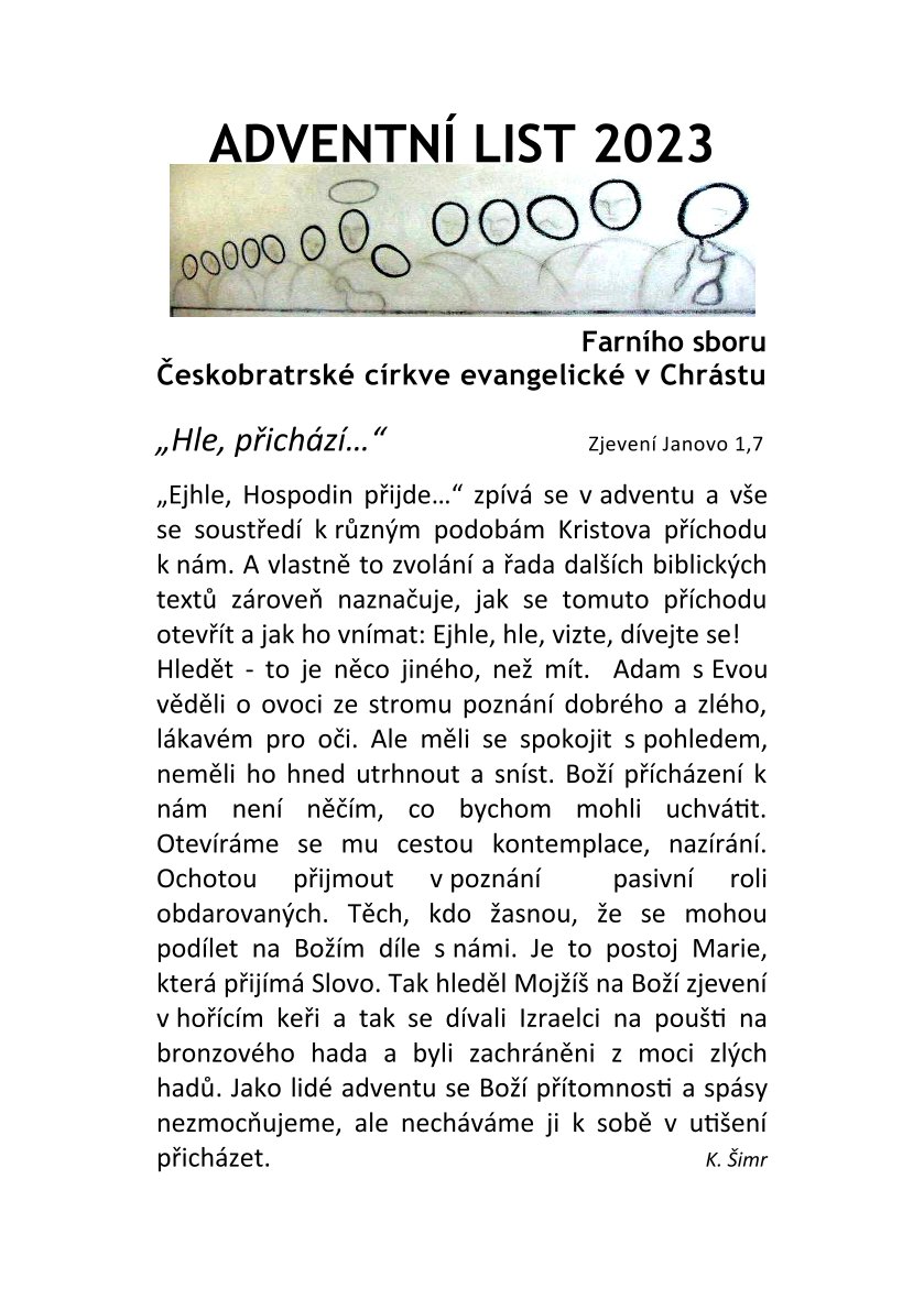 Od Anonym (neověřeno) , 3 Únor 2026 Adventní sborový list 2023 Zde najdete jednotlivé stránky prosincového sborového listu.