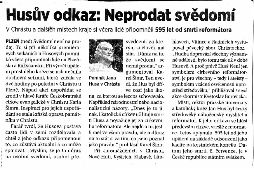 Husův odkaz: Neprodat svědomí (článek z MF Dnes, 7.7. 2010)