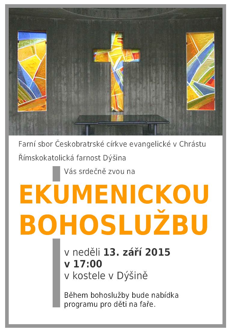 V neděli 13. září 2015 se uskutečnila tradiční zářijová společná bohoslužba našeho sboru s římskokatolickou farností v Dýšině - tentokrát v dýšinském kostele. Nesla ve znamení Kristova kříže. Letos poprvé připravili dýšinští také souběžný program pro děti.