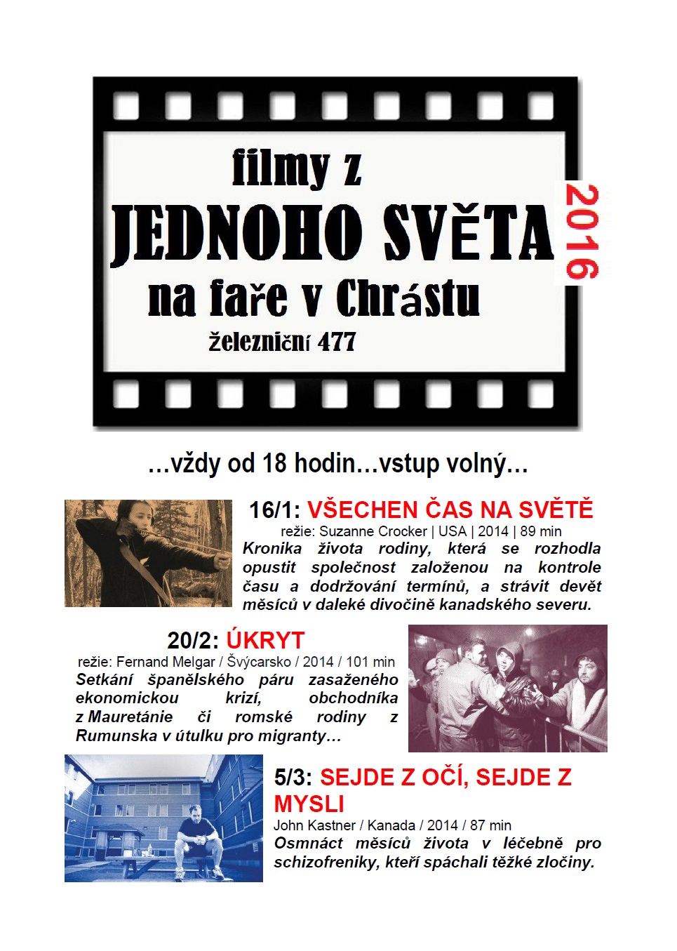 Po Novém roce opět zveme na filmové dokumenty z festivalu Jeden svět. Projekce začínají vždy v 18 hodin a vstup je volný.