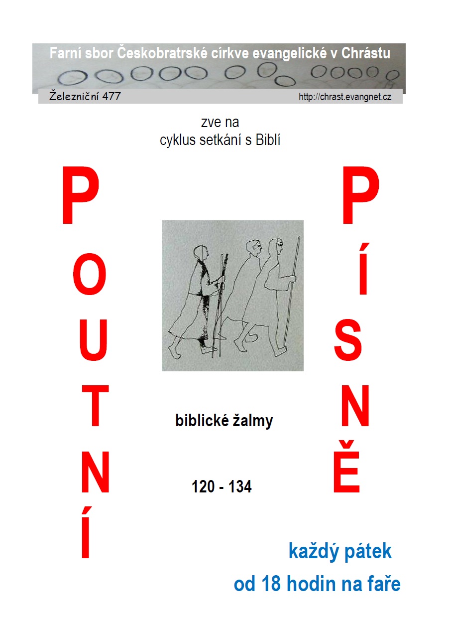 Od pátku 11.10.2013 zahajujeme v rámci pátečnách Setkání s Biblí cyklus výkladů a rozhovorů nad "poutními písněmi".