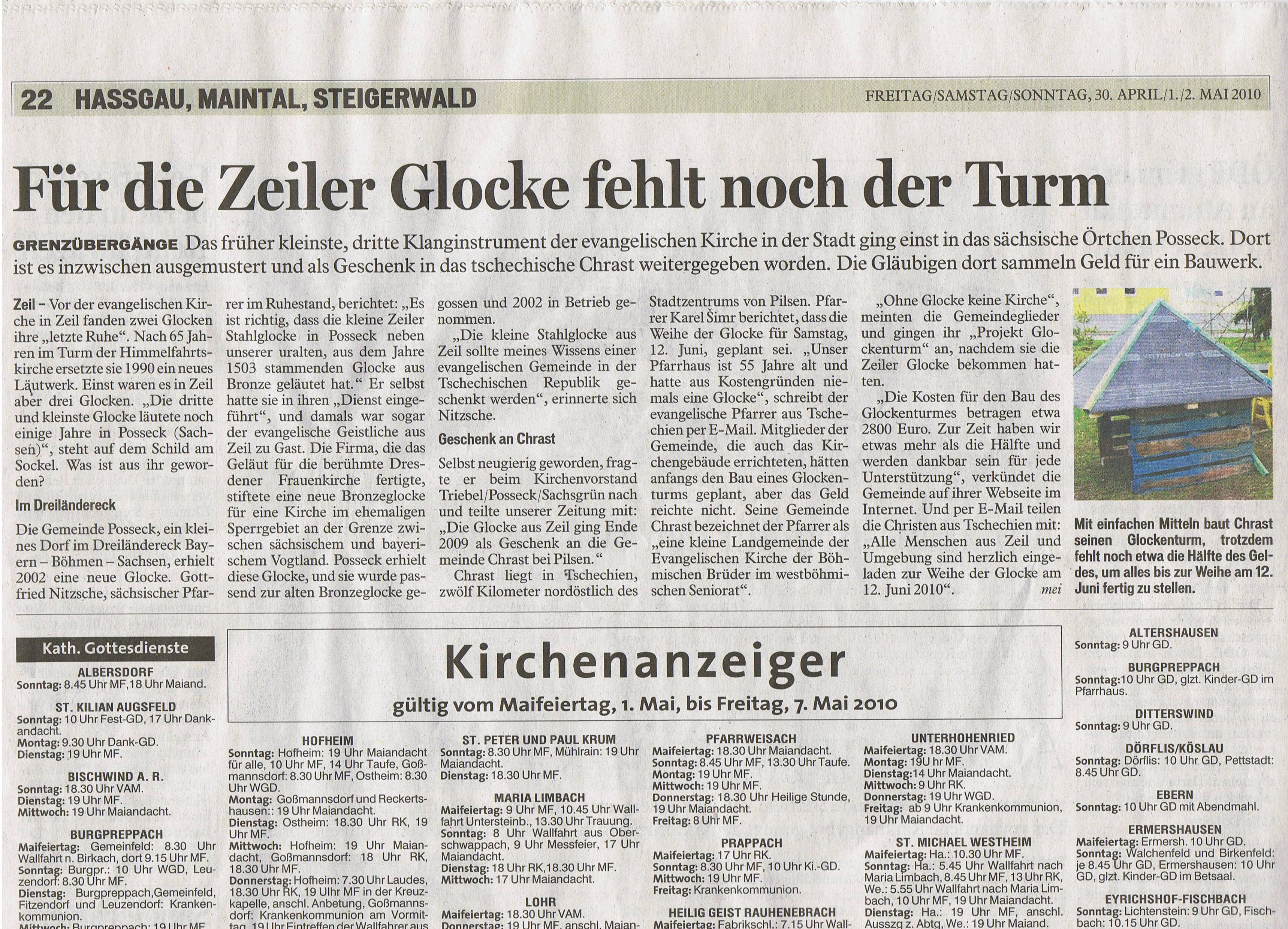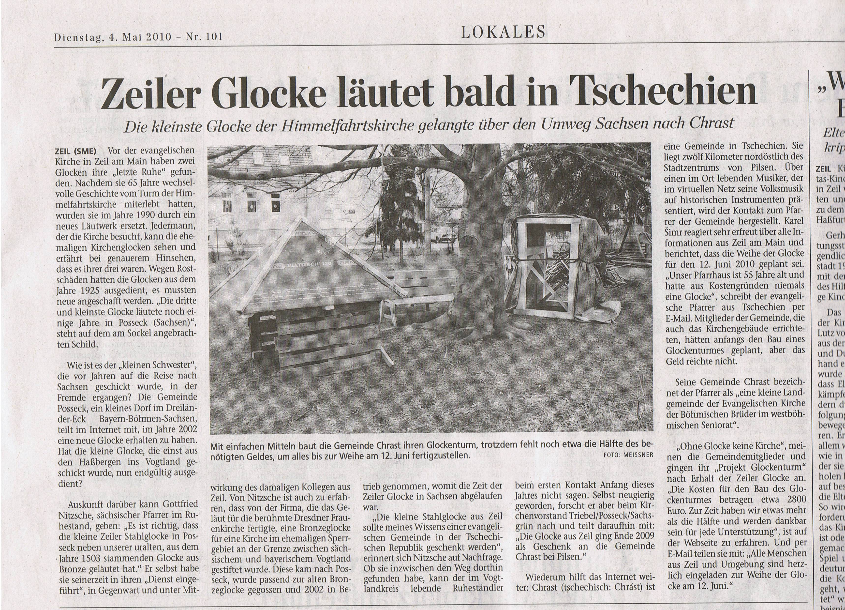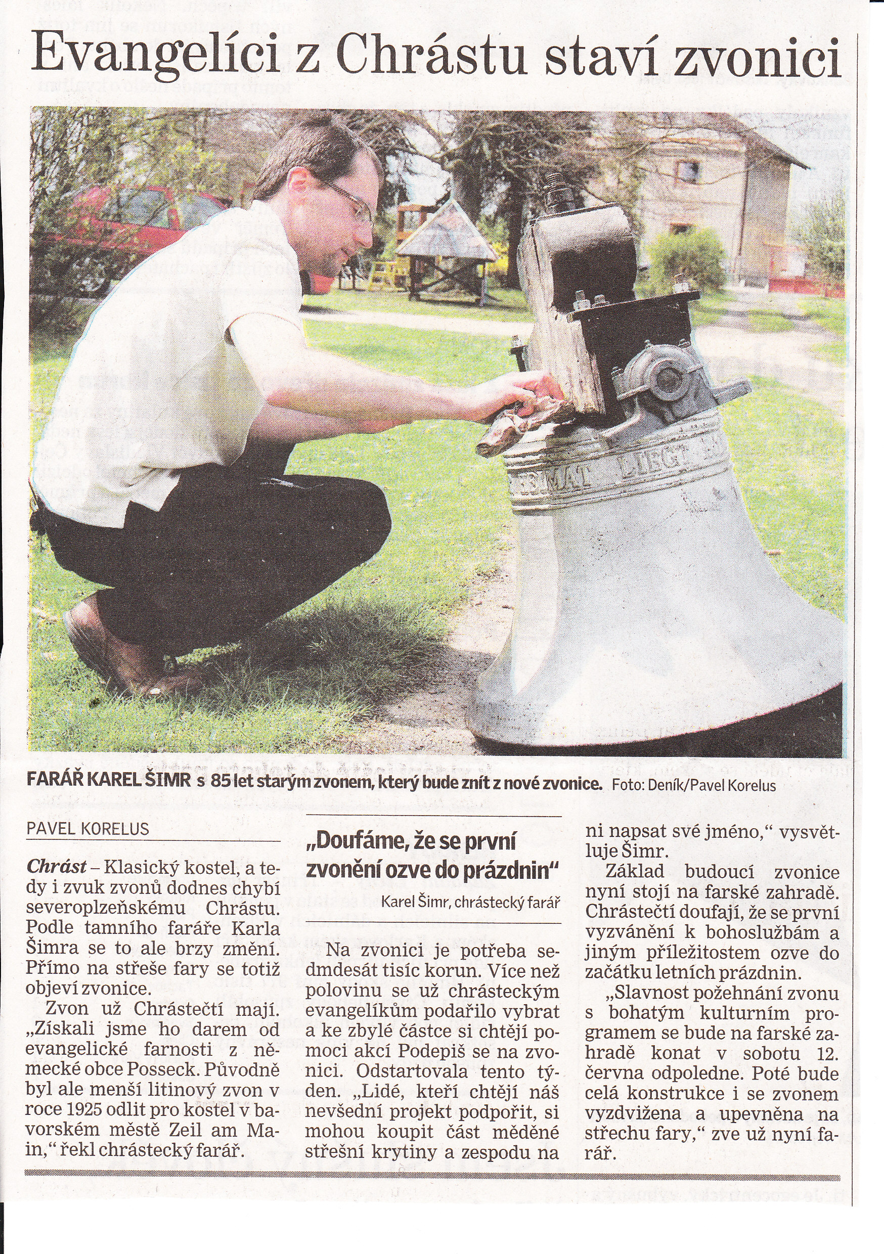 27.6. 2010: V položce menu Média přibyly tři články z německých novin o požehnání zvonu v Chrástu.