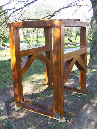 9.6. 2010: Pracovníci firmy Střechy Kuneš zkompletovali na farské zahradě zvonici (více fotografií zde).