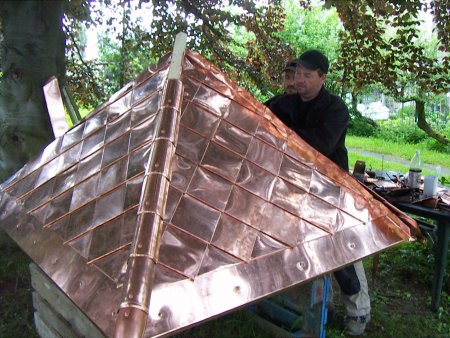 27.5. 2010: Střechu zvonice už zdobí slušivá fazóna z mědi