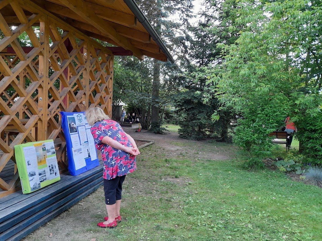 10.6. 2022: Nástěnka s informacemi o projektu Útočiště se setkala se zájmem při noci kostelů. "Jé, tati, tady budou moci lidé i bydlet," komentoval její četbu asi desetiletý hošík.