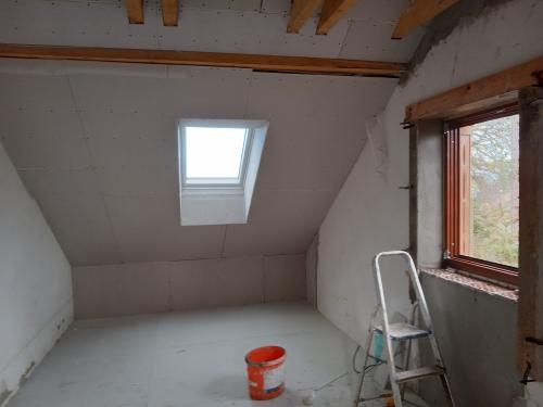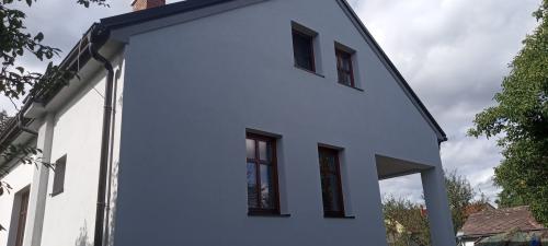 30.9.2024: Po prázdninové pauze jde stavba do finále. Podívejte se, jak se krásně bělá nová omítka.