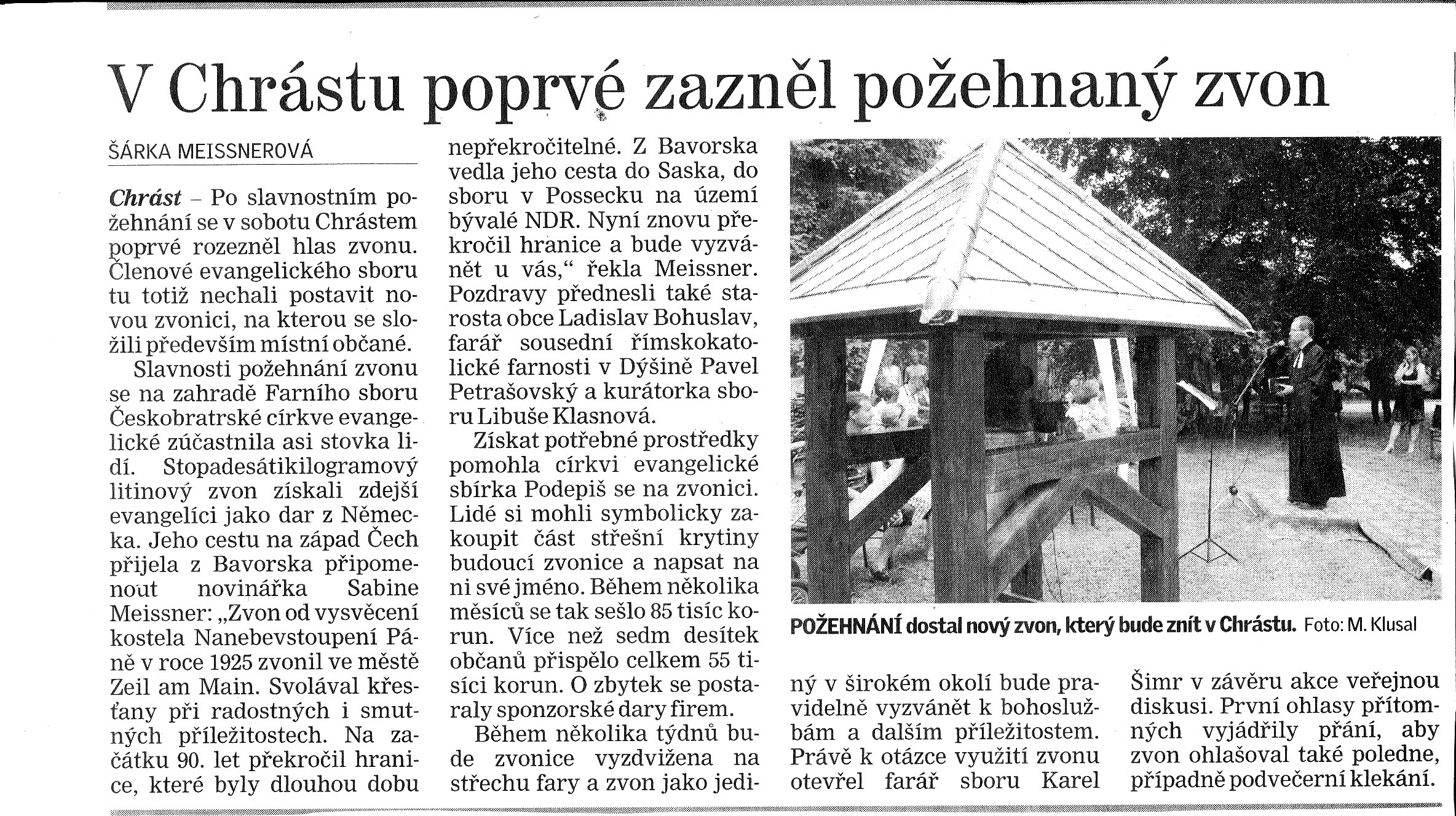 V Chrástu poprvé zazněl požehnaný zvon